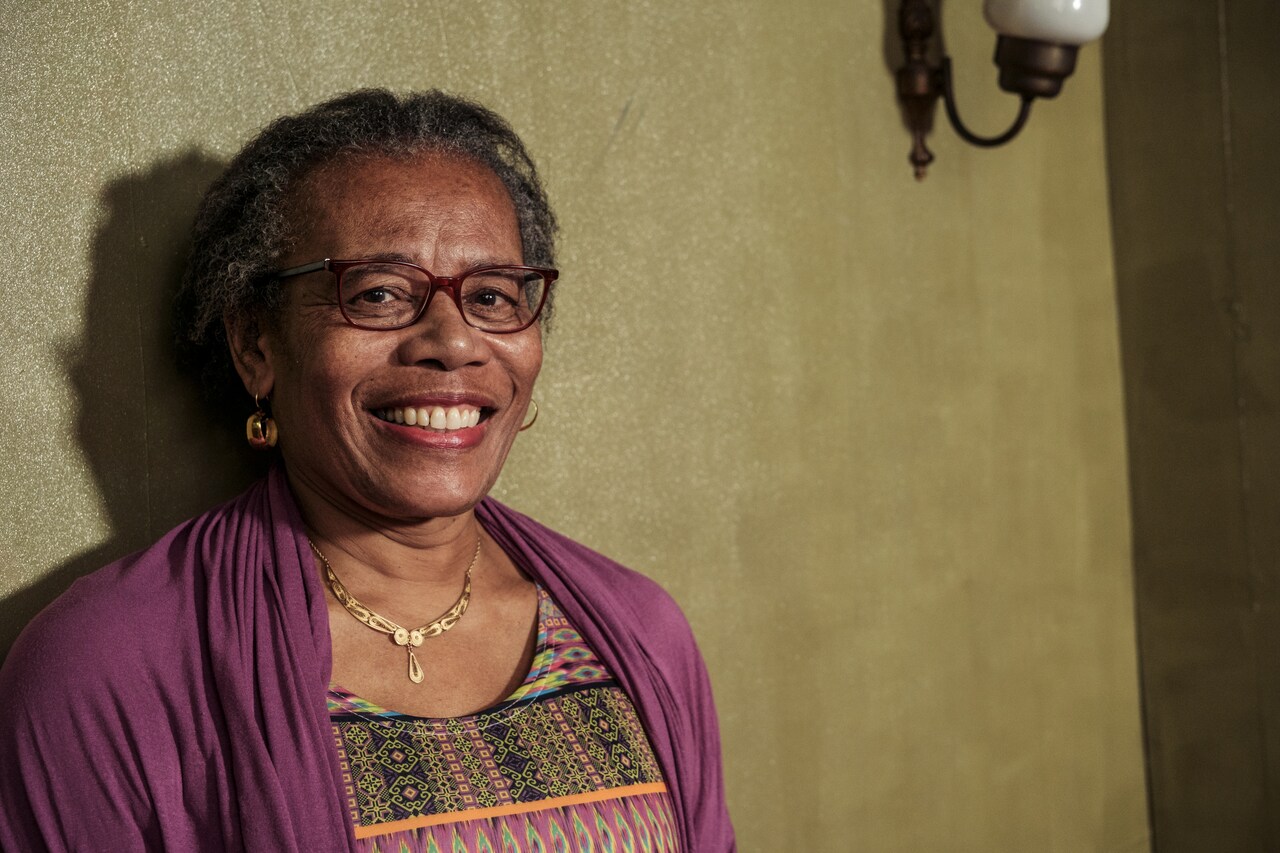 Nadia Tilon (1953) is a social pedagogue, journalist, actor and singer. Shortly after starting her studies, she started acting for the Loson-theater and continued this with its successor, Toneelgroep Makandra. Until the early 1990s, Nadia regularly performed at demonstrations, actions, manifestations and street festivals. She is also involved in the film Women of Suriname (1978), both in the making of the original film and in the current re-release. The many questions about the soundtrack led Nadia to make a podcast series, Surinamese Action Songs of the Seventies.